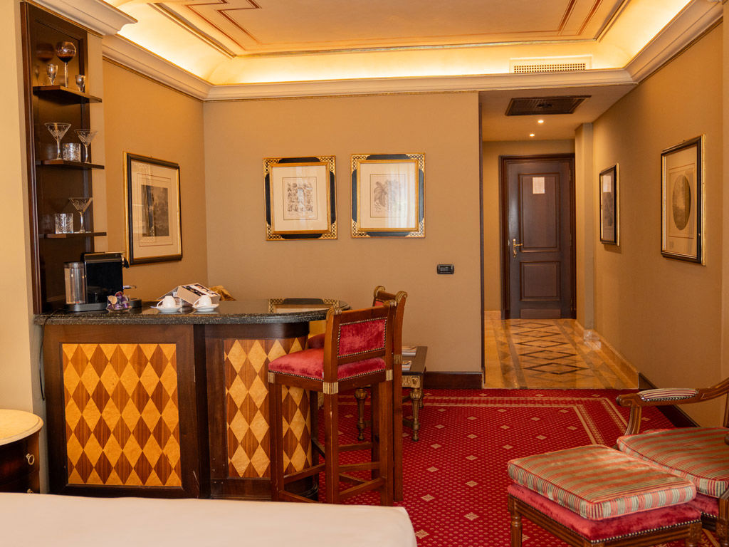 È inoltre presente un prestigioso piano bar con funzionale macchina da caffè. La linea cortesia è ulteriormente arricchita da ciabattine e accappatoi per ogni ospite.